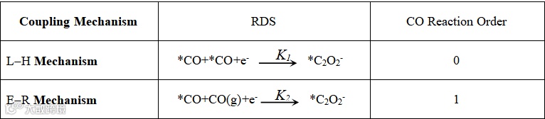 表1.反应动力学方程计算不同耦合机制的反应决速步的反应速率