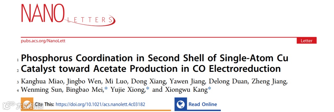 华工康雄武/中科大熊宇杰/上海光源梅丙宝最新Nano letters:电还原CO反应中,Eley−Rideal机制助力单原子Cu催化剂合成多碳产物