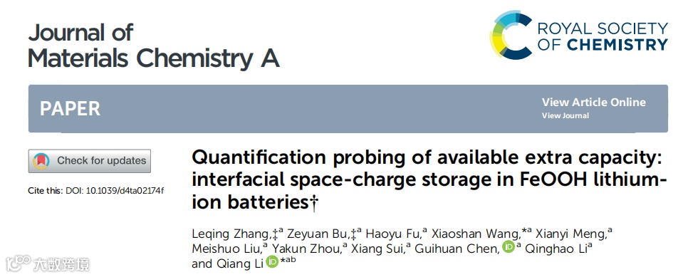 基于此,青岛大学李强教授课题组,在国际知名期刊Journal of Materials Chemistry A上发表题为“Quantification probing of available extra capacity: interfacial space-charge storage in FeOOH lithium-ion batteries”的观点文章。