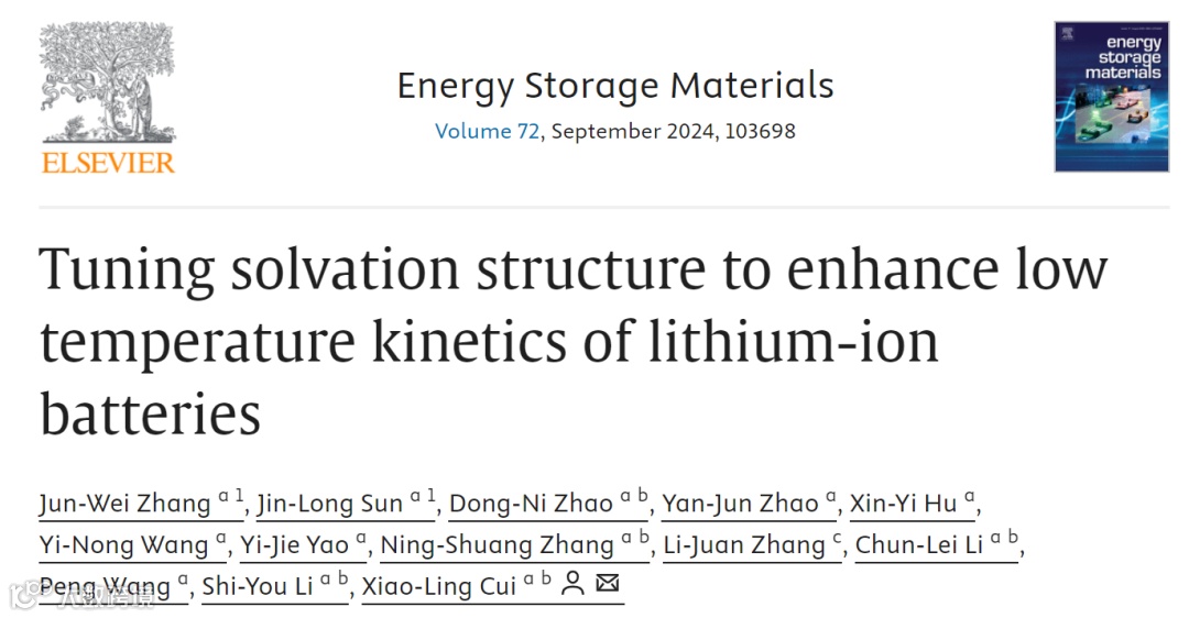 锂离子电池(LIBs)因其能量密度高、无记忆效应、环境友好、使用寿命长、技术成熟等优点,在众多储能系统中脱颖而出,几乎垄断了储能领域(例如3C产品、电动汽车(EV)、电网储能系统)。然而,锂离子电池在低温下性能会急剧下降,这严重限制了锂离子电池在高海拔或高纬度地区以及某些国防、极地探索和航空航天中的应用主。电解液作为锂离子电池的重要组成部分,极大地影响了低温下锂离子的扩散速率。因此,电解液的选择和优化已成为锂离子电池低温应用的瓶颈。