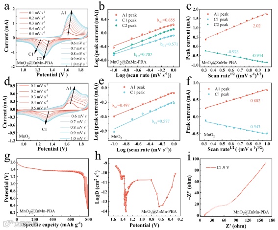 图3 基于MnO2@ZnMn-PBA的AZIB的动力学分析。