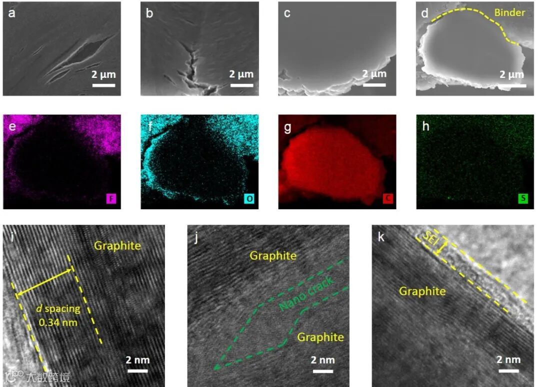 图四:SEM与TEM对石墨负极失效的表征