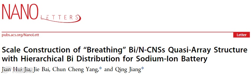 吉林大学杨春成、蒋青教授等Nano Letters:超长循环寿命和低温快速充放电的Bi/N-CNSs类阵列结构
