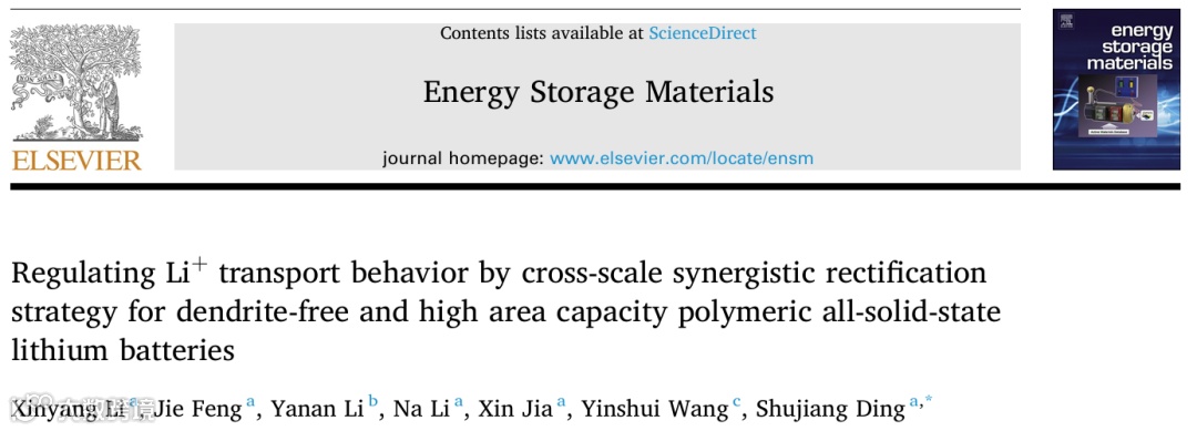 Xinyang Li, Jie Feng, Yanan Li, Na Li, Xin Jia, Yinshui Wang, Shujiang Ding,Regulating Li+ transport behavior by cross-scale synergistic rectification strategy for dendrite-free and high area capacity polymeric all-solid-state lithium batteries, Energy Storage Materials, 2024, 72, 103759.