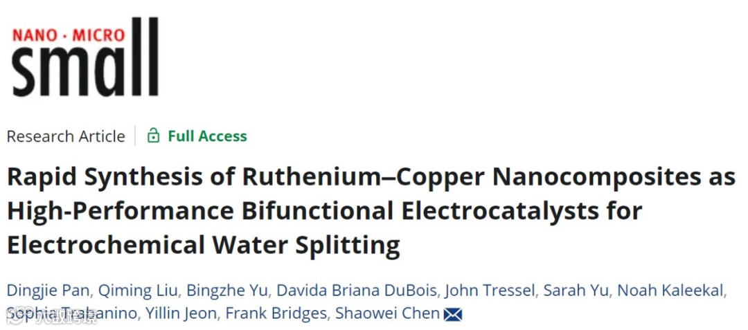 陈少伟教授,Small: 钌-铜纳米复合材料的快速合成及其在电化学水分解中作为高性能双功能电催化剂的应用
