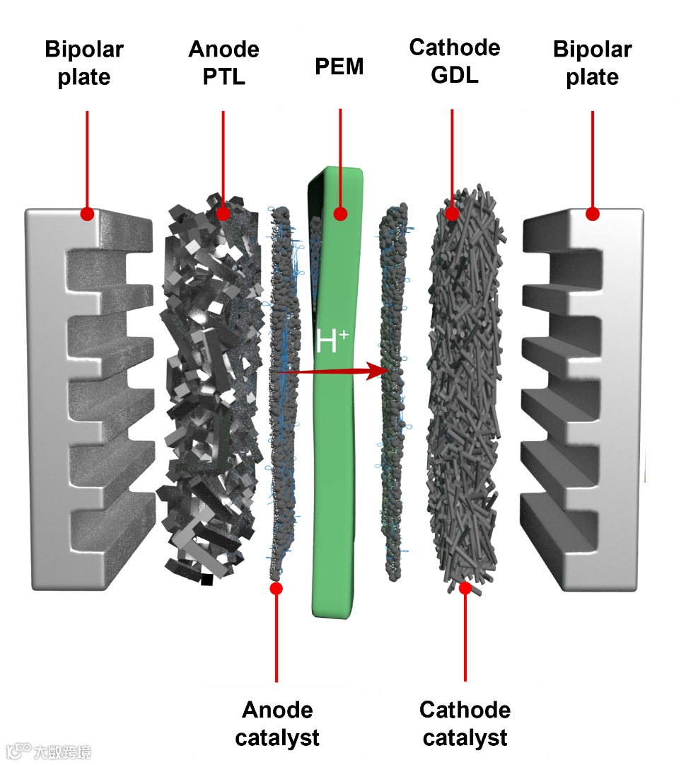 针对这些挑战,作者提出了一系列缓解策略,例如,通过优化催化剂的稳定性和抗溶解性能以延长其使用寿命;开发更耐久的质子交换膜材料以减少化学降解;设计先进的多孔传输层结构以改善气体扩散和水管理;以及应用防腐涂层和新型材料来提升双极板的抗腐蚀能力和导电性能。此外,作者还强调了在不同工作条件下(如高电流密度、长期稳定运行)对MEA进行系统性测试的重要性。这不仅有助于揭示各部件在实际运行中的行为和相互作用,还能为优化整体系统设计提供指导。通过对关键部件失效机制的全面理解及其改进策略的持续探索,PEMWE技术在性能提升和寿命延长方面不断取得突破。这种系统性、综合性的研究,为PEMWE技术向大规模商业化迈进奠定了坚实的基础,进一步巩固了其在未来清洁能源体系中的核心地位,助力全球能源转型的实现。