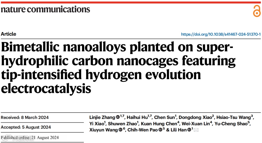 超亲水碳纳米笼上锚定双金属纳米合金展现尖端强化的高效析氢电催化