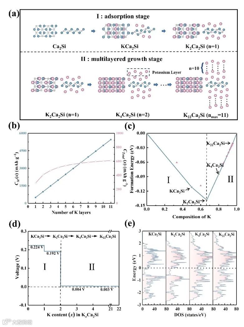 Ca2Si单层材料的有序多层生长机制及其超高钾储存能力