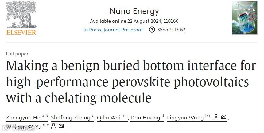 近日,来自山东大学的于伟泳教授课题组在《Nano Energy》上发表了题为“Making a benign buried bottom interface for high-performance perovskite photovoltaics with a chelating molecule”的研究论文。该研究通过一种无损剥离的方法完整暴露钙钛矿薄膜的底面,并采用埋底界面的修饰策略,成功提升了钙钛矿太阳能电池的性能与稳定性。这一成果为未来高效钙钛矿光伏器件的设计提供了重要的借鉴意义。