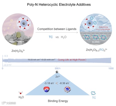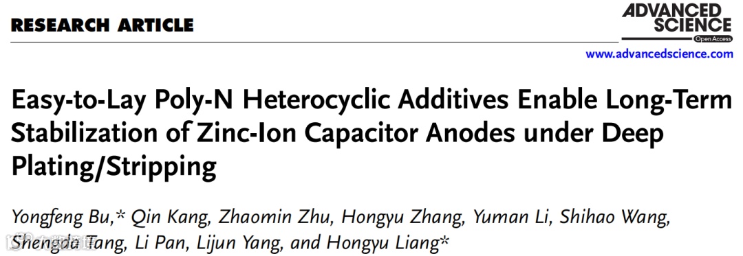 倾向于卧着吸附的“多氮杂环”添加剂用于深度沉积/剥离条件下Zn离子电容器阳极的高效稳定