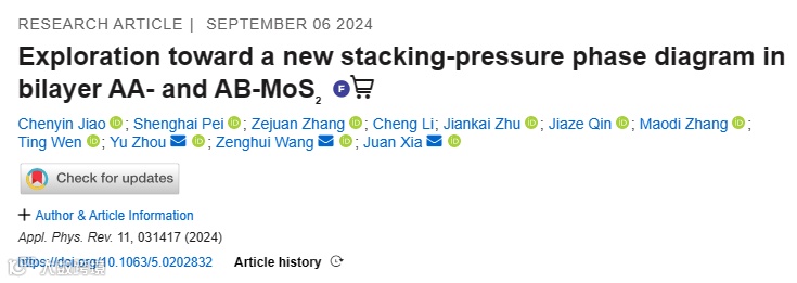 电子科技大学王曾晖、夏娟、裴胜海等Applied Physics Reviews:探索双层二硫化钼中的堆垛-压强相图