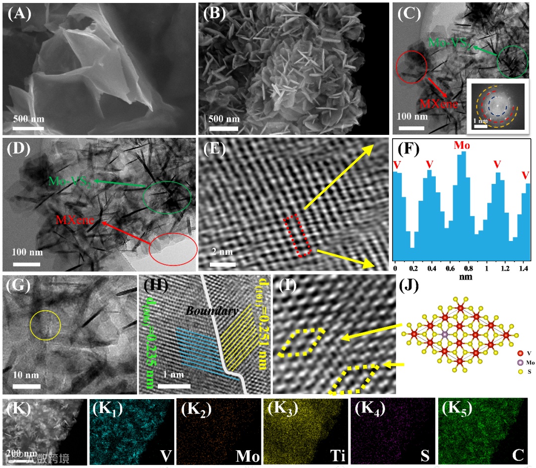 图2. Mo-VS2/MXene催化剂的微观结构