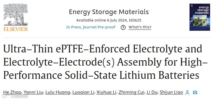 ePTFE增强的超薄固态电解质和电解质–电极一体化组件用于高效固态锂电池