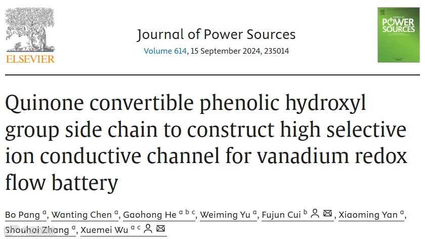 醌可转换酚羟基侧链构建高选择性离子传导通道用于钒氧化还原液流电池