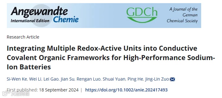 相关工作以“Integrating Multiple Redox-Active Units into Conductive Covalent Organic Frameworks for High-Performance Sodium-Ion Batteries”为题,于2024年9月18在Angew. Chem. Int. Ed. (DOI: 10.1002/anie.202417493)上在线发表。