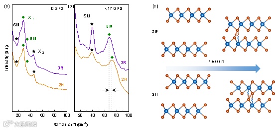 二维WS2超低波数拉曼光谱超低波数展现出的压强诱导的堆垛对称性