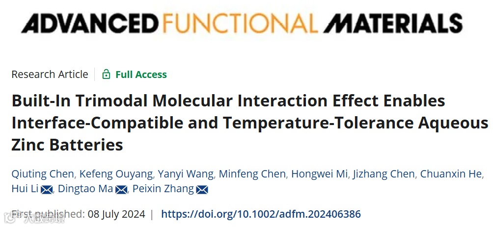 内置三模态分子相互作用效应实现界面兼容、耐温的水性锌电池