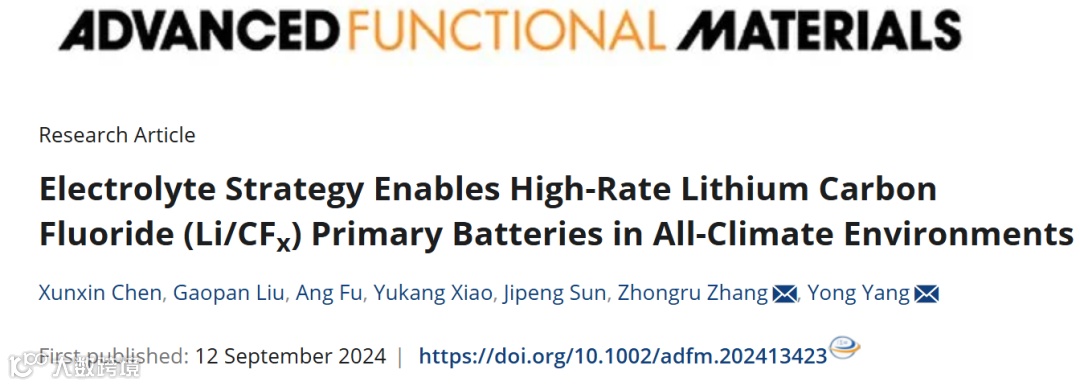 电解质策略助力实现大倍率锂/氟化碳电池在各种气候环境中的应用