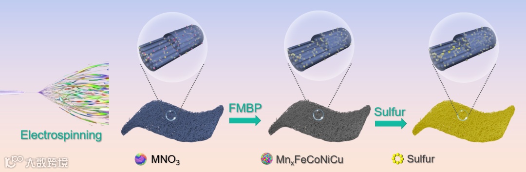 图2. MnxFeCoNiCu/MCCFs样品的制备过程示意图。