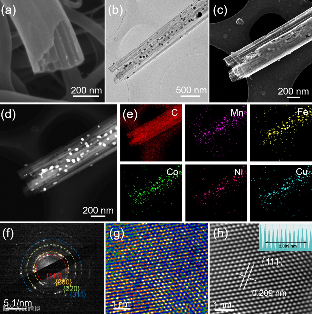 要点一:MnxFeCoNiCu高熵合金纳米颗粒改性多通道碳纤维(MnxFeCoNiCu/MCCFs)的制备表征