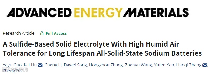 天津理工大学 刘凯和 张联齐Advanced Energy Materials:一种对湿空气耐受性高的硫化物固体电解质用于长寿命全固态钠电池