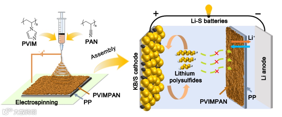 近日,来自宁波工程学院的林陈晓博士、Ping Feng,三峡大学郑勇博士与安徽工业大学闫岩教授、刘明凯教授合作,在国际知名期刊Advanced Functional Materials上发表题为“Safe, Facile, and Straightforward Fabrication of Poly(N−vinyl imidazole)/polyacrylonitrile Nanofiber Modified Separator as Efficient Polysulfide Barrier toward Durable Lithium−Sulfur Batteries”的研究性论文。该研究开发了一种新型改性隔膜,通过静电纺法在PP隔膜上制备聚(N-乙烯基咪唑)(PVIM)与聚丙烯腈(PAN)复合纳米纤维涂层。