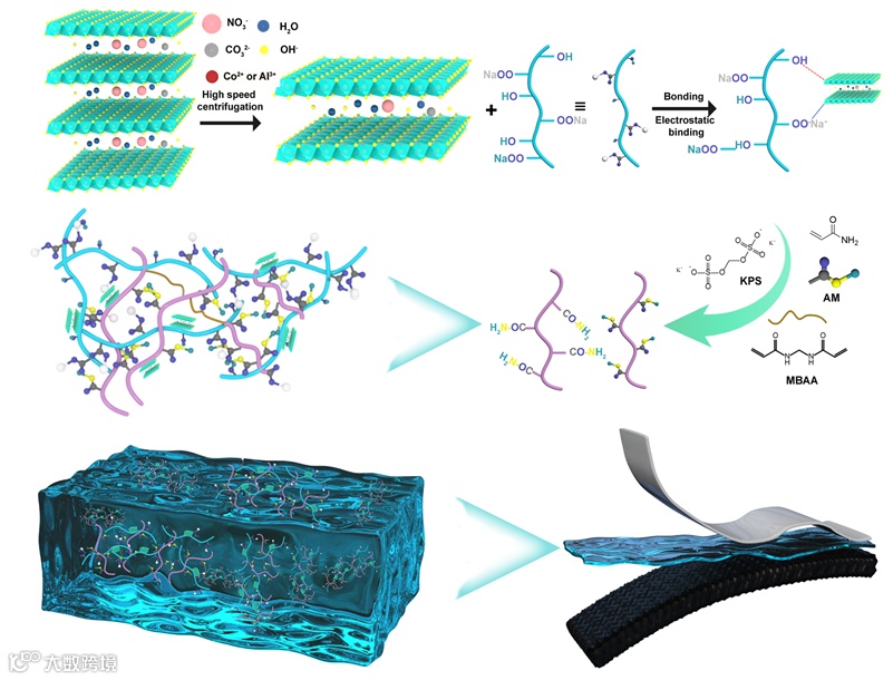 图1. Co/Al LDH/CMC/PAM双网络水凝胶制备工艺流程图。