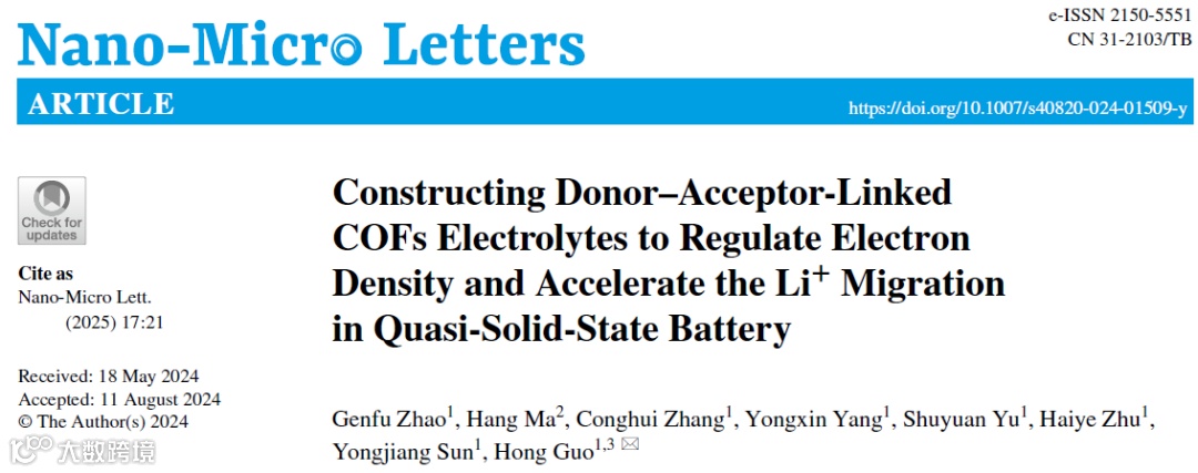 给体-受体链接的COFs固态电解质调控电子密度,提高电池循环性能,抑制枝晶生长