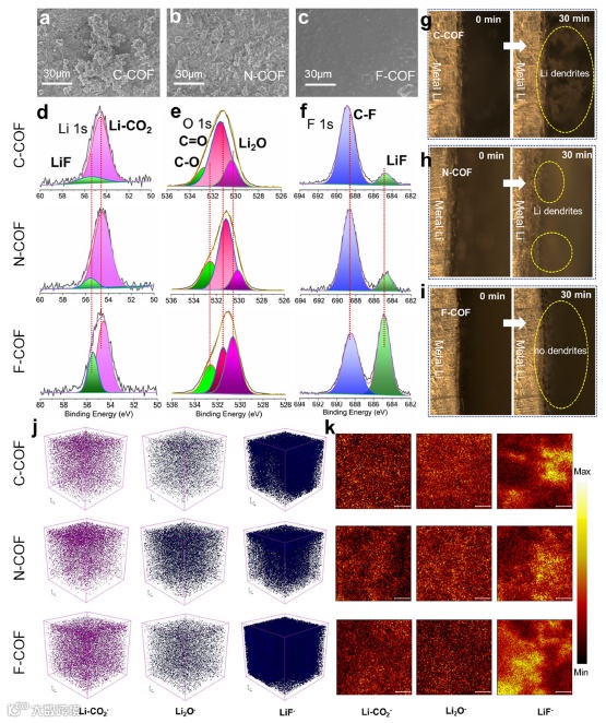 要点5:具有富电子的F-COF固态电解质材料显著的抑制锂枝晶的生长,提高了与锂负极的稳定性,改善电池循环性能。