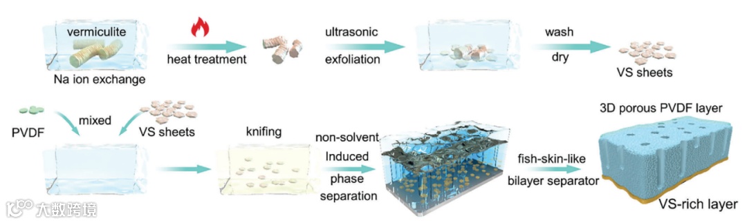 近日,安徽大学侯之国博士与杨斌副教授课题组合作,在钠金属电池SEI层的构造设计研究方面取得新进展,相关成果以“High Modulus Na2SiO3-Rich Solid Electrolyte Interphase Enable Long-Cycle and Energy-Dense Sodium Metal Battery”发表在材料科学领域国际著名期刊《Advanced Functional Materials》上。该工作利用二维纳米片蛭石VS设计鱼鳞状隔膜诱导在钠金属负极表面原位反应形成高模量、高稳定性的富含高钠离子传导性Na2SiO3的SEI层,这种薄而坚固的SEI层不仅能有效的抑制钠枝晶生长,并且实现了高能量密度。组装好的纽扣电池以及软包电池表现出较好的循环稳定性和高安全性。