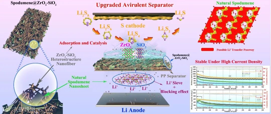 Spodumene Nanosheets@ZrO2-SiO2 Heterostructure Nanofibers Modified Separator for Long-cycle Lithium-sulfur Batteries