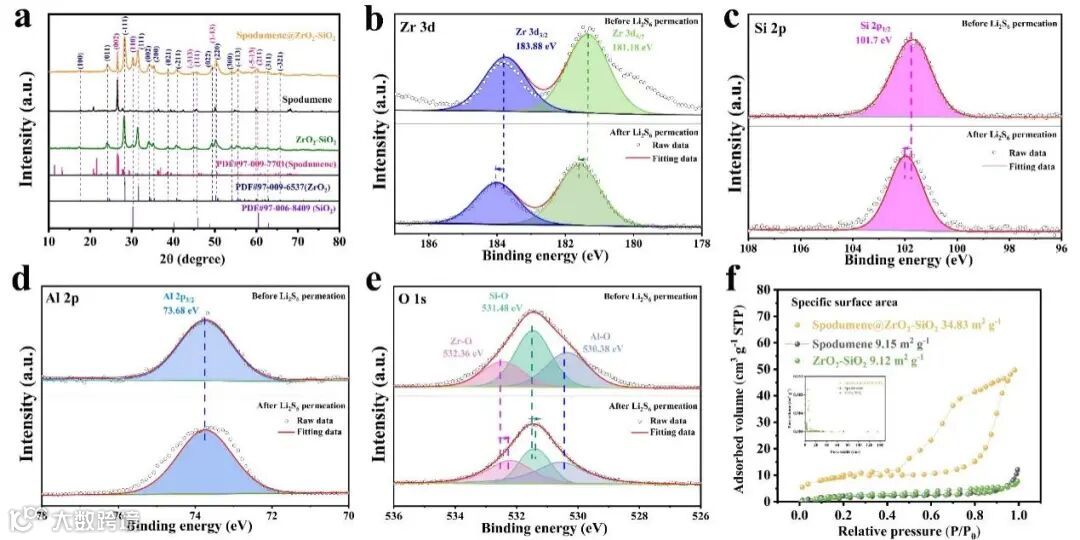 图3. Spodumene@ZrO2-SiO2的结构表征。