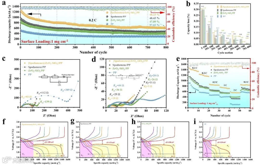 长春理工大学-在读博士生李琳为该项研究成果的第一作者。该设计理念和纳米材料制备技术对开发多功能锂硫电池改性隔膜材料具有重要作用,制备的[Spodumene@ZrO2-SiO2]/PP作为改性的隔膜组装成的锂硫电池在各项电化学测试中均表现出更优的性能,有较广阔的开发空间。