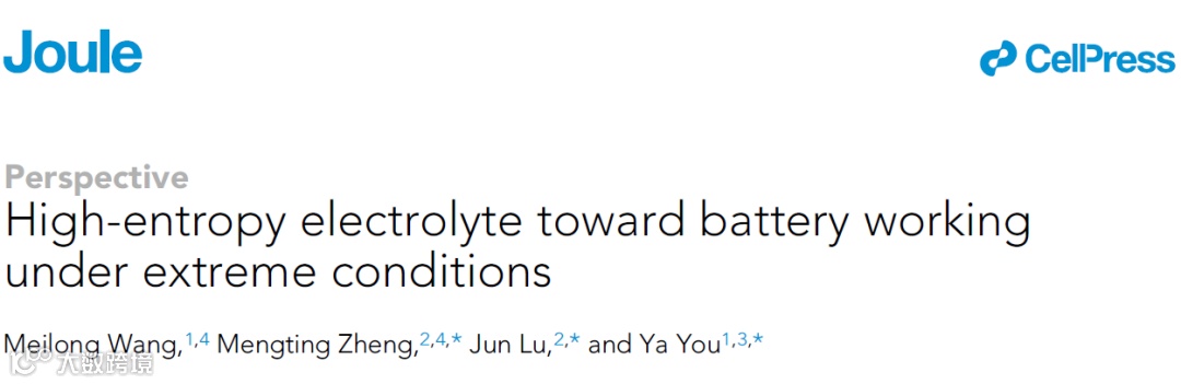 近日,来自武汉理工大学的尤雅教授与浙江大学大学的陆俊教授合作,在国际知名期刊Joule上发表题为“High-entropy electrolyte toward battery working under extreme conditions”的观点文章。该观点文章从热力学的角度出发,通过使用物理量熵扩展了极端条件下电解质设计的讨论。在水,非水和固态电解质熵调谐的作用进行了深入的讨论。对其性质、实际可行性和发展前景的进一步研究表明,熵调节是改善电解质特性的可行策略。最后,对该策略给出了合理的设计思路和展望,并提出了未来的发展方向。