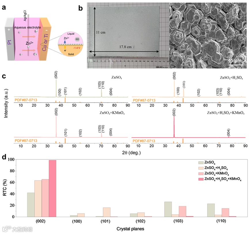 要点一:无纹理基底上制备 99% 超高 RTC 的大尺寸 Zn(002) 负极