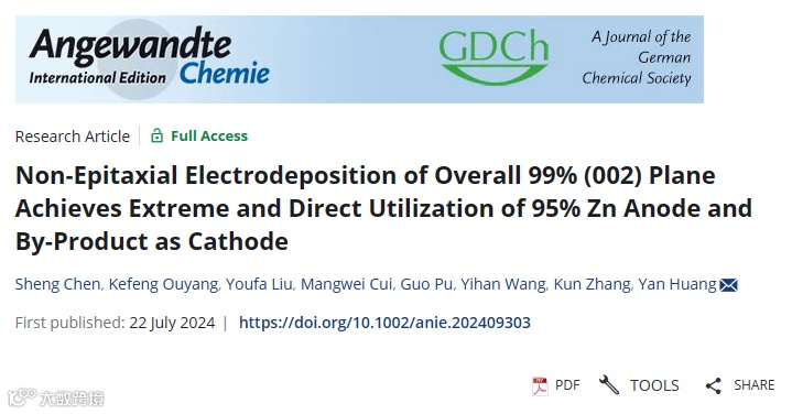 总织构系数高达99% (002)晶面的非外延电沉积实现95%锌负极利用率和副产物作为正极的直接利用