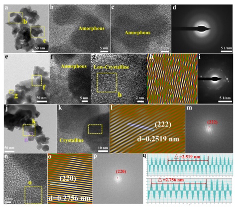 合理的设计过渡金属催化材料的结构将有效的改善材料的催化性能。其中,过渡金属氧化物(TMOs)的催化性能与其电子结构密切相关。电荷之间的相互转移、金属活性中心的氧化态和自旋态等因素都会影响TMOs的电子结构。自旋态的差异将直接影响金属-配体键的强度,这将改善活性中心与中间体的吸附行为进而直接调节反应界面和能垒处的电荷转移。自旋态的调控为合理设计优异的TMOs电催化剂提供了有效的途径。先前的文献表明具有无定形结构的材料由于其无序的原子排列方式具有更多的缺陷,使得其具有更多的活性位点数量。因此,对无定形催化材料的活性中心进行电子调控来进一步提升催化材料的性能是至关重要的。但是,即使无定形催化剂已被广泛报道于降低OER的过电位,但是从结晶性的角度探索电子自旋态与催化性能的关系鲜有报道。