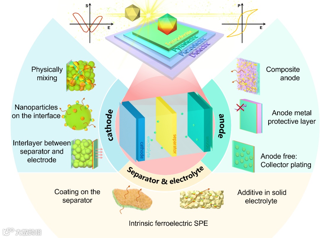 图1. 铁电材料增强电化学储能系统示意图。