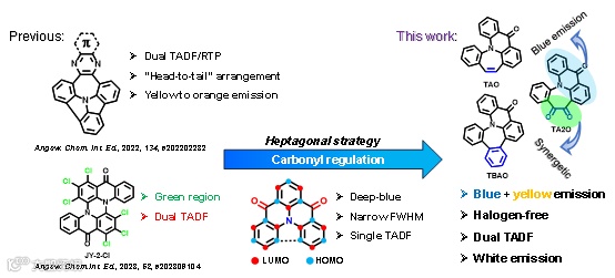 Synergetic Carbonyl and Heptagonal Structure for Single-Molecule White Organic Light-Emitting Diodes with Dual Thermally Activated Delayed Fluorescence