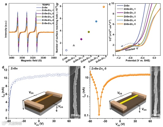 图3. ZnSe-Znv纳米线的空穴数和电子性能的测量