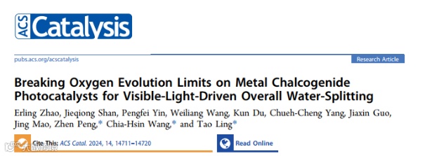 近日,天津大学凌涛、江苏大学彭振和中国台湾同步辐射研究中心Chia-Hsin Wang教授合作,在国际知名期刊ACS Catalysis上发表题为“Breaking Oxygen Evolution Limits on Metal Chalcogenide Photocatalysts for Visible-Light-Driven Overall Water-Splitting”的观点文章。该观点文章通过详尽的实验和微观动力学分析了限制光催化OER反应速率的关键因素,同时系统的讨论了催化剂表面的光生空穴的浓度与OER反应速率及催化剂的光腐蚀性之间的关系。
