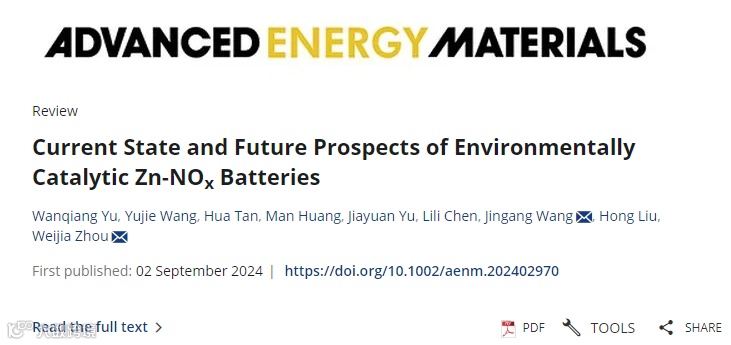 济南大学周伟家教授、王金刚教授, AEM:基于氮氧化物还原反应的环境催化Zn-NOx电池的研究现状与展望