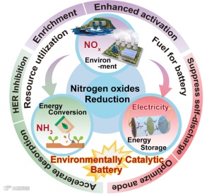 图1. 能够同时实现氮氧化物污染物降解、氨合成和电能输出的Zn-NOx电池。