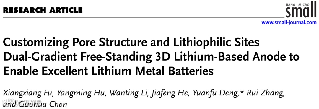 鉴于此,华南理工大学邓远富教授团队通过静电纺丝结合后续的煅烧得策略构建了一种新型的双梯度3D寄主(GDPL-3DH)(如图1所示),调控锂离子沉积模型,有效地抑制枝晶锂生长并诱导锂离子在3D寄主内“自下而上”的沉积模式,显著提高复合负极的电化学性能。相关研究内容以“Customizing Pore Structure and Lithiophilic Sites Dual-Gradient Free-Standing 3D Lithium-Based Anode to Enable Excellent Lithium Metal Batteries”为题目发表于期刊《Small》上。