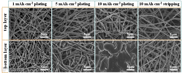 图2. GDPL-3DH电极在锂沉积/剥离过程中的形貌演变图。