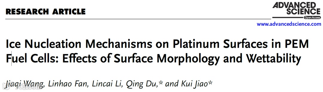 近日,来自天津大学的焦魁教授与杜青教授,在国际知名期刊Advanced Science上发表题为“Ice Nucleation Mechanisms on Platinum Surfaces in PEM Fuel Cells: Effects of Surface Morphology and Wettability”的文章。