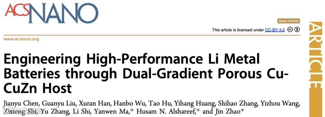 Engineering High-Performance Li Metal Batteries through Dual-Gradient Porous Cu-CuZn Host. ACS Nano, 2024.
