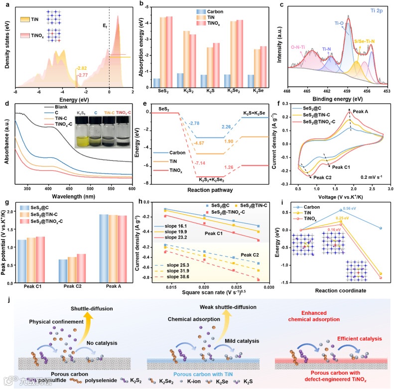 缺陷工程制备TiNOx催化剂激活K-SeS2电池决速步骤