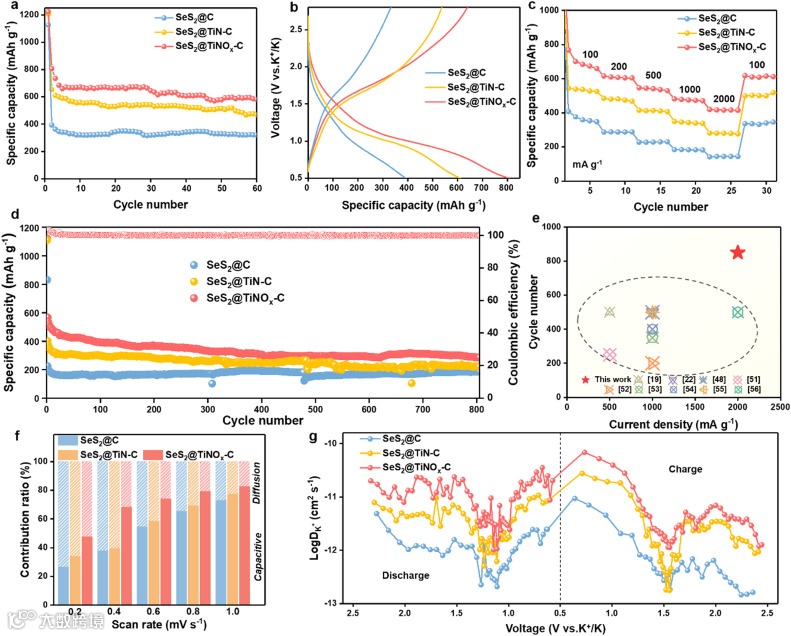 Fig. 5. Electrochemistry of SeS2@TiNOx-C in K-SeS2 battery.