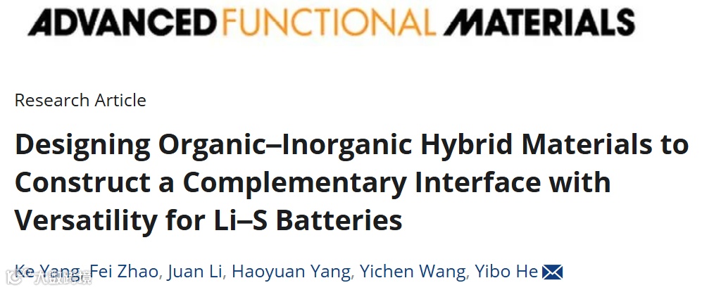 Ke Yang, Fei Zhao, Juan Li, Haoyuan Yang, Yichen Wang, Yibo He*, Designing Organic-Inorganic Hybrid Materials to Construct a Complementary Interface with Versatility for Li-S Batteries, Adv. Func. Mater., 2024, 2410236.